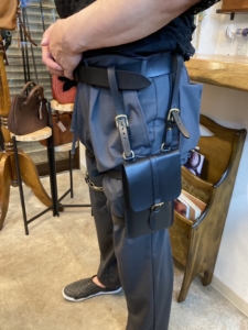 さて! 話がずいぶんそれましたが写真はお客様よりフルオーダーのご相談 を賜り、レッグポーチを制作させていただきました!!!